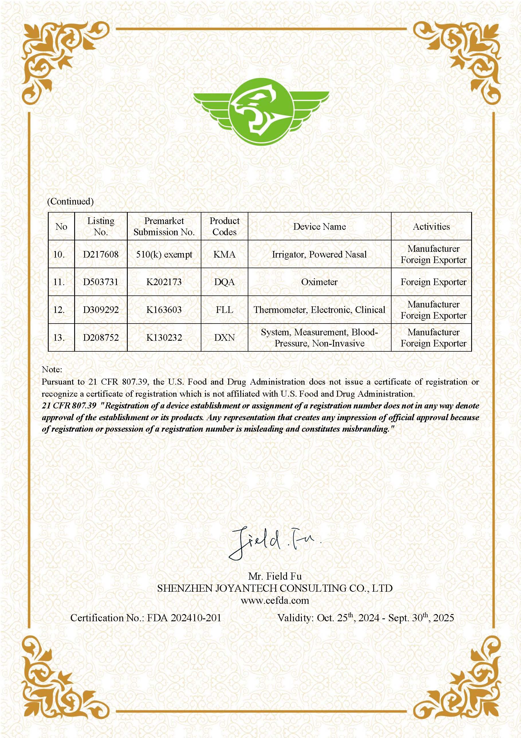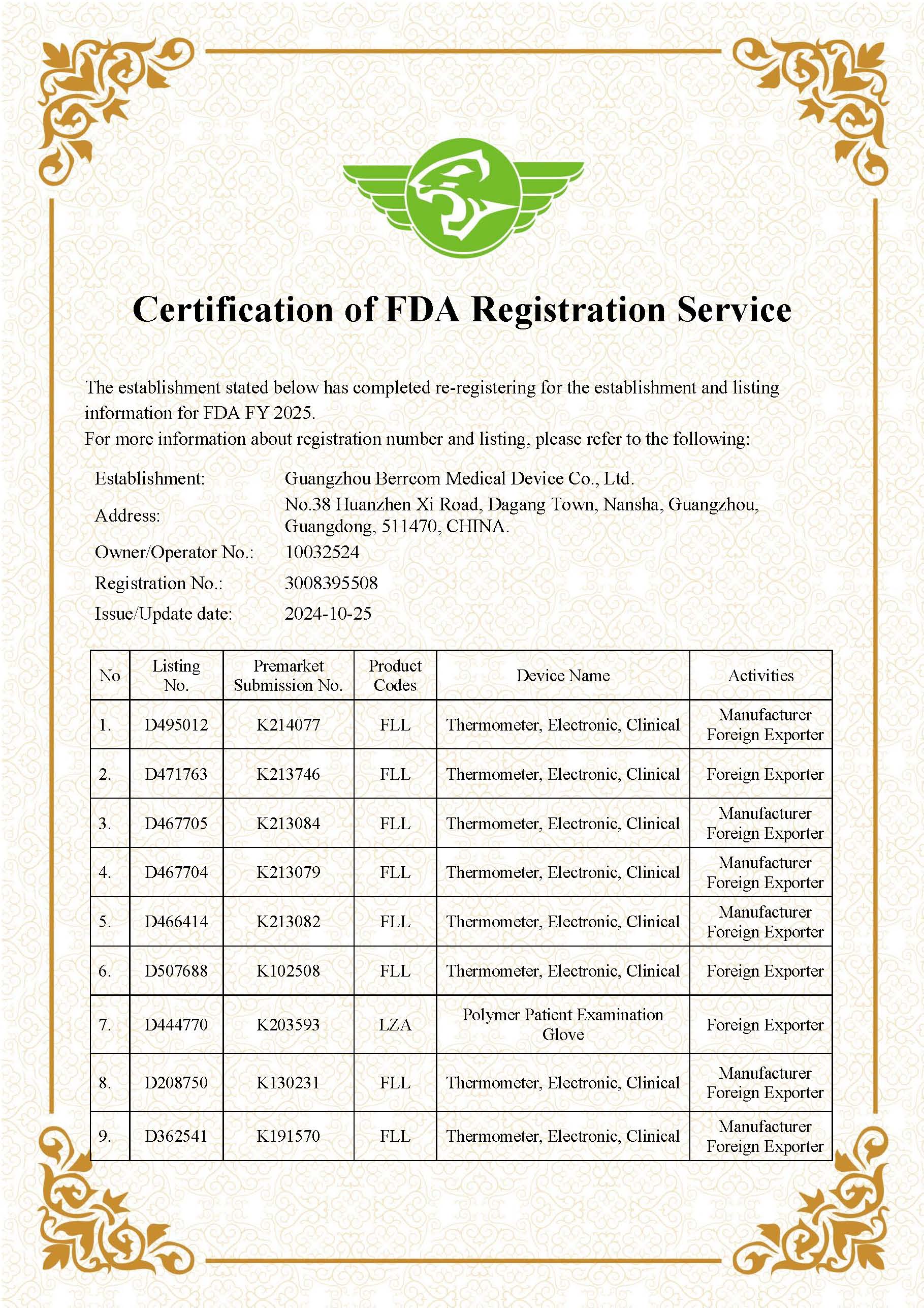 24年來,集團(tuán)始終產(chǎn)品質(zhì)量作為企業(yè)第一生命力,把技術(shù)創(chuàng)新作為第一生產(chǎn)力,采用國際先進(jìn)水平的智能化生產(chǎn)系統(tǒng),匯聚眾多優(yōu)秀的現(xiàn)代化生產(chǎn)高技術(shù)人才按照國際化標(biāo)準(zhǔn)建立質(zhì)量管理體系。集團(tuán)通過ISO 13485認(rèn)證,產(chǎn)品符合國內(nèi)醫(yī)療標(biāo)準(zhǔn)和國際質(zhì)量認(rèn)證醫(yī)療CEFDA標(biāo)準(zhǔn)以及歐盟環(huán)保ROHS等標(biāo)準(zhǔn),榮獲多項(xiàng)技術(shù)專利和醫(yī)療行業(yè)榮,被廣東省科學(xué)技術(shù)廳核批為 “廣東省醫(yī)用紅外體溫測量工程技術(shù)研究中心”。