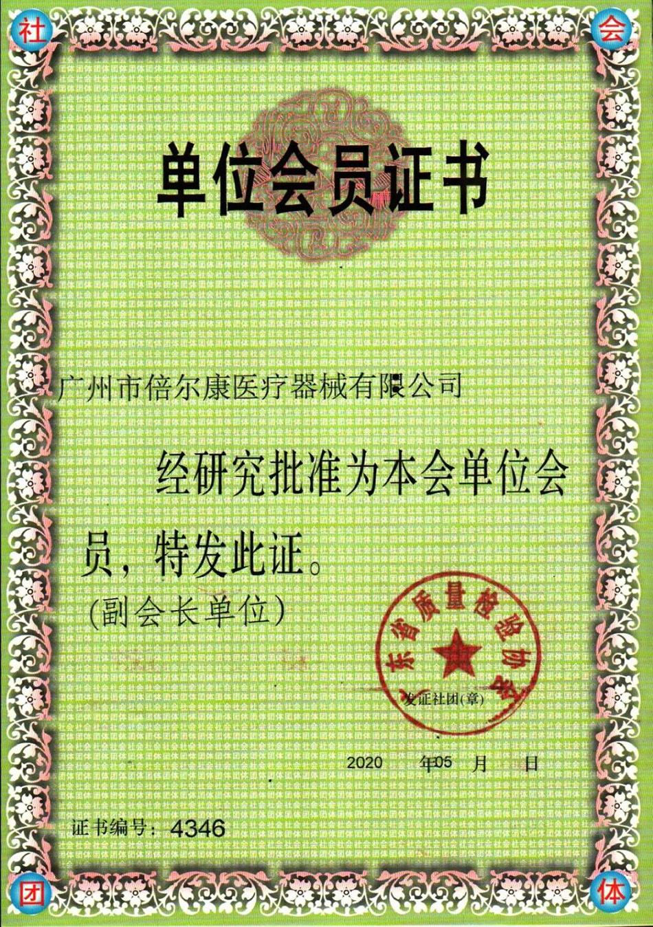 廣州市倍爾康醫(yī)療器械有限公司當(dāng)選“廣東省質(zhì)量檢驗(yàn)協(xié)會(huì)副會(huì)長單位”。