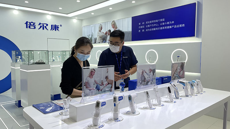 展會期間,不少客商在倍爾康展位駐足停留,與工作人員詳細了解體溫計以及血壓計等品牌新品、感受家庭醫療器械帶來的新體驗。