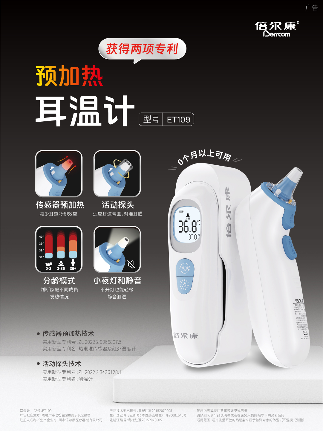 預(yù)加熱耳溫計(jì),準(zhǔn)確測(cè)溫,舒適放心